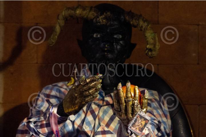 El Ángel Negro es una escultura con rostro de diablo y cuernos, cada primer viernes del mes los creyentes ofrecen comida, cabezas de cerdo, tequila, cerveza, dulces, medallas de oro, dólares, dinero, corazones y fetos de res