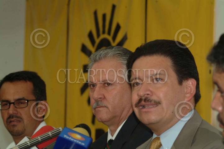Calos Navarrete, vocero del PRD y Elias Dip Rame, ex candidato a la gubernatura de San Luis Potosí por ese partido, denunciaron que el Instituto Electoral no hizo caso a las denuncia presentadas por las irregularidades en el proceso electoral del pasado 6 de julio. FOTO: Nelly Salas/CUARTOSCURO.COM