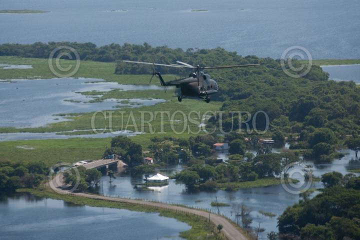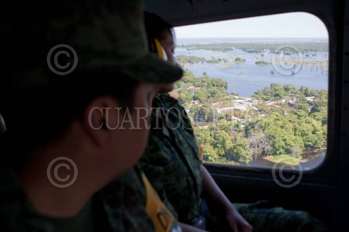 MACUSPANA, TABASCO, 240CTUBRE2011.- Aeronaves de la Fuerza Aérea de la Secretaría de la Defensa Nacional y apoyo de elementos castrenses sobre vuelan con ayuda médica y despensas del FONDEN las diversas zonas afectadas que mantiene inundado e incomunicado las vías terrestres que provocan las fuertes lluvias. Cabe hacer mención que en esta entidad desbordo sus aguas los ríos Tulija y Puxcatan provocando daño en al menos 90 por ciento de la población. FOTO: MARCO POLO GUZMÁN HERNÁNDEZ/CUARTOSCURO.COM