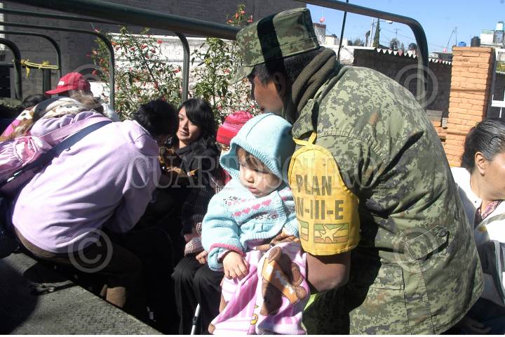 NEZAHUALCÓYOTL, ESTADO DE MÉXICO, 05FEBRERO2010.- Las colonias Valle de Aragón 1ª y 2ª sección, Plazas de Aragón e Impulsora, donde elementos del ejercito Mexicano, en combinación con elementos de la ASE Trabajan rescatando a las personas que aun se encontraban en las azoteas de sus domicilios, desde el día de ayer se vieron afectadas por la fractura del dique en el canal Rió de los Remedios, en el Municipio de Ecatepec y Nezahualcóyotl, por lo que fue implementado el Plan DN-III. FOTO: LUIS CARBAYO/CUARTOSCURO.COM
