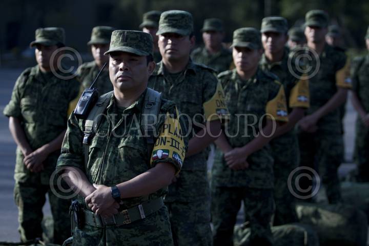 MÉXICO, D.F., 13JUNIO2012.- Elementos del Ejercito durante la presentación de la Fuerza de Apoyo para Casos de Desastres del Plan DN-III-E que se realizo en el Campo Militar No. 1-A. FOTO: RODOLFO ANGULO /CUARTOSCURO.COM