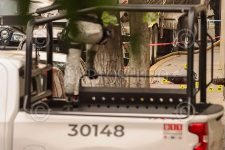 ACAPULCO, GUERRERO, 08JUNIO2025.- Elementos resguardan la zona luego de que dos hombres fueron asesinados a balazos esta madrugada en la Costera Miguel Alemán. Las víctimas se encontraban afuera del bar Euforia cuando fueron agredidos. El lugar fue resguardo por policías hasta que los cuerpos fueron trasladados al servicio médico forense. FOTO: CARLOS ALBERTO CARBAJAL/CUARTOSCURO.COM