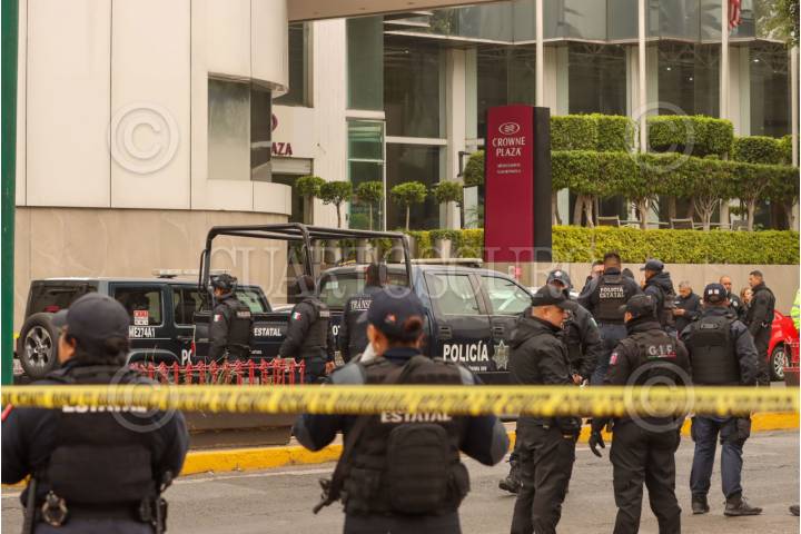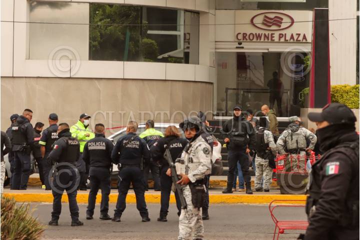 TLALNEPANTLA, ESTADO DE MÉXICO, 20MARZO2025.- Dos hombres de entre 35 y 40 años de edad, entre los que presuntamente figuraba el líder de las grúas “Búfalo”, que acudieron a un hotel, en este municipio, para participar en un evento de la Asociación de Empresarios y Ciudadanos del Estado de México (ASECEM), fueron asesinados a balazos por un par de delincuentes que le dispararon en repetidas ocasiones con armas de fuego desde una motocicleta en marcha. Al evento habían sido invitados, el Presidente Municipal de Tlalnepantla, Raciel Pérez y el Presidente del Tribunal de Justicia del Estado de México, maestro Fernando Díaz, sin embargo, al momento en que sucedieron los hechos todavía no llegaban, por lo que no tuvieron algún tipo de problema o que se manejara un posible atentado contra ellos. FOTO: ROGELIO MORALES/CUARTOSCURO.COM