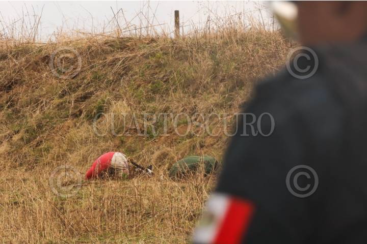 CIUDAD DE MÉXICO, 04 JUNIO 2025.- Dos hombres fueron hallados asesinados y decapitados en un terreno de cultivo a un costado de la carretera Xochimilco-Oaxtepec, kilómetro 28, en la alcaldía Milpa Alta. Elementos de seguridad acordonaron la zona mientras peritos realizaban las diligencias correspondientes. Las víctimas no han sido identificadas. FOTO: ROGELIO MORALES /CUARTOSCURO.COM