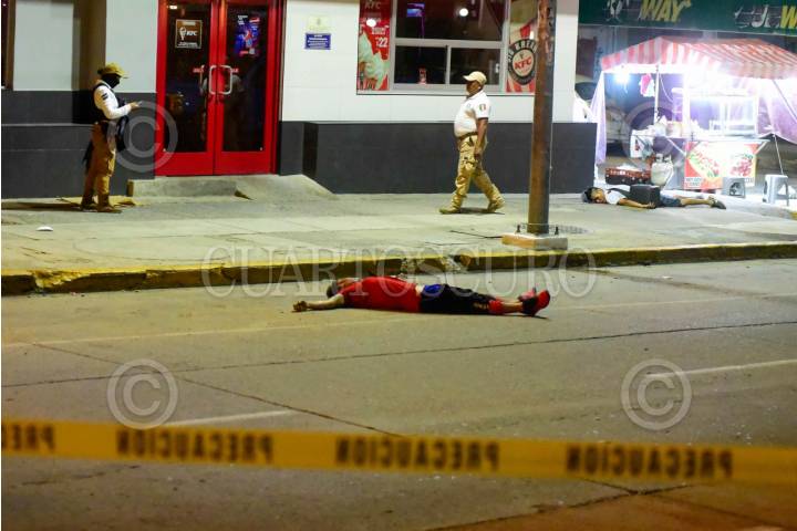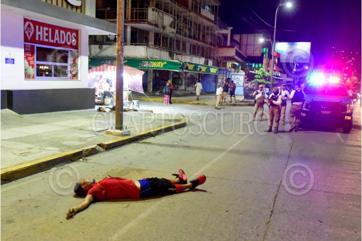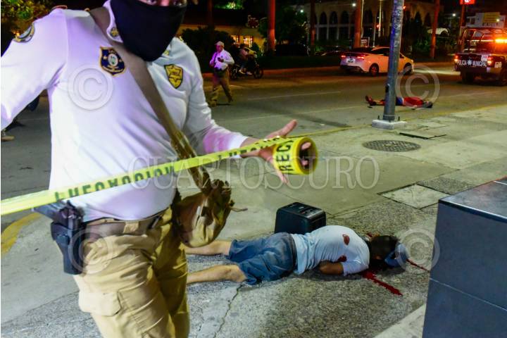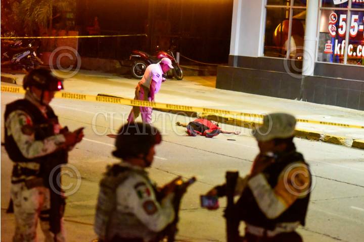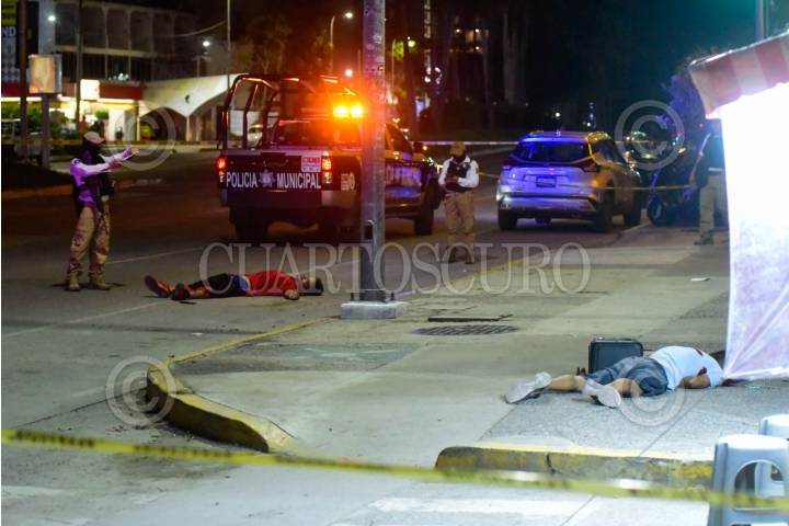 ACAPULCO, GUERRERO, 08JUNIO2025.- Dos hombres fueron asesinados a balazos esta madrugada en la Costera Miguel Alemán. Las víctimas se encontraban afuera del bar Euforia cuando fueron agredidos. El lugar fue resguardo por policías hasta que los cuerpos fueron trasladados al servicio médico forense. FOTO: CARLOS ALBERTO CARBAJAL/CUARTOSCURO.COM