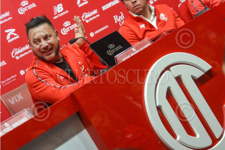 TOLUCA, ESTADO DE MÉXICO, 21MAYO2025.- Antonio Mohamed D.T. del Club Toluca ofreció conferencia de prensa como parte del Día de Medios de la Final del Torneo Clausura 2025 de la Liga BBVA MX, que será disputada entre los Diablos de Toluca y el Club América, previo al partido de ida. FOTO: CRISANTA ESPINOSA AGUILAR /CUARTOSCURO.COM