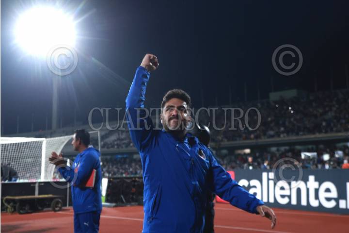 CIUDAD DE MÉXICO, 01MARZO2025. Jose Luis Meléndez festeja el triunfo de Chivas al finalizar el partido de fútbol Pumas vs Guadalajara correspondiente a la jornada 10 del Torneo Clausura 2025 de Liga BBVA MX, en el Estadio Olímpico Universitario. FOTO: EDGAR NEGRETE LIRA/CUARTOSCURO.COM