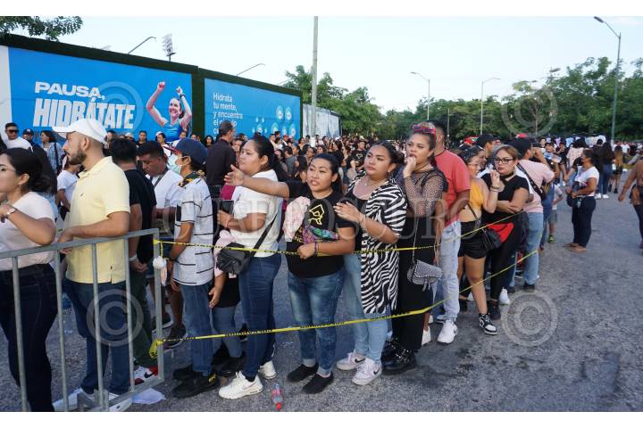 Miles de personas esperan a las afueras del estadio de fútbol previo al concierto de Daddy Yankee en Cancún, Quintana Roo