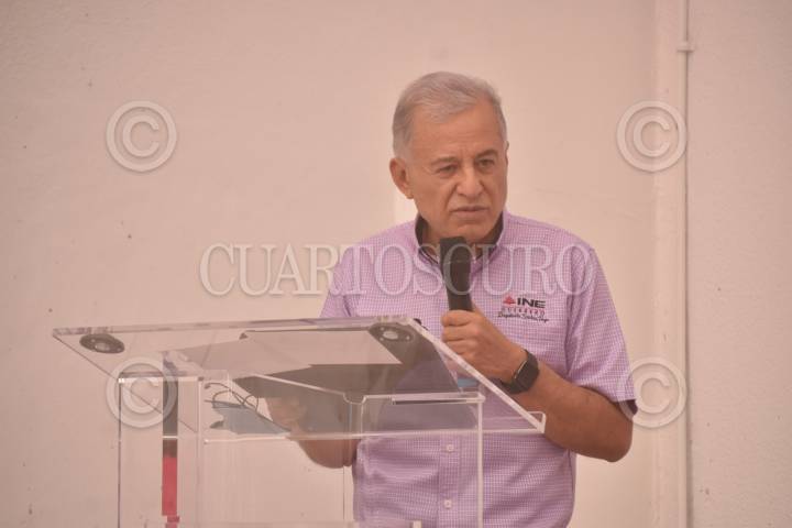 Consejero presidente, Dagoberto Santos Trigo, dando discurso.