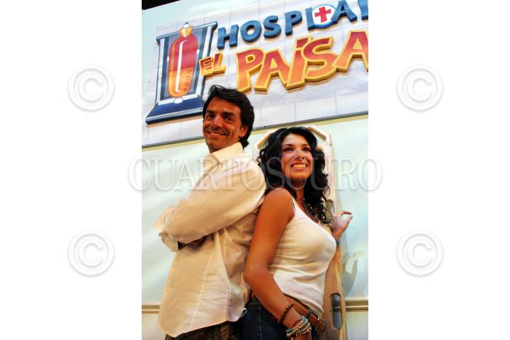 México, D.F., 30JUNIO2004.- Eugenio Derbez, es el productor del nuevo programa de televisión Hospital el Paisa, que será estrenado el próximo 7 de Julio a las 22:00 hrs. En la imagen lo acompaña su pareja sentimental Dalilah Polanco, que es parte del elenco. FOTO: Moisés Pablo/CUARTOSCURO.COM