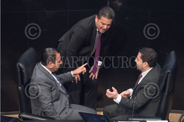 CIUDAD DE MÉXICO, 08MAYO2019.- Juan Carlos Romero Hicks, coordinador del PAN; el diputado Jorge Romero y el senador Damián Zepeda, conversaron en la instlación de la Sesión Extraordinaria en materia de Reforma Educativa en el pleno de la Cámara de Diputados. FOTO: GRACIELA LÓPEZ /CUARTOSCURO.COM