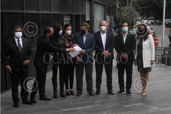 Los senadores Damián Zepeda, Kenia López Rabadán, Julen Rementería, Víctor Fuentes, por el partido del PAN acudieron a la Fiscalía General de la República para exigir que se le entregue la carpeta de investigación al abogado de Ricardo Anaya, quien fue citado una audiencia virtual en el Reclusorio Norte