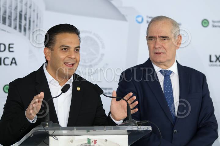 Los senadores Julen Rementeria y Damián Zepeda de la bancada del PAN, ofrecieron una conferencia de prensa en el Patio del Federalismo