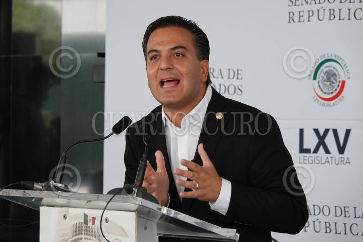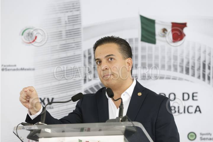 El senador Damián Zepeda durante una conferencia de prensa en el Patio del Federalismo