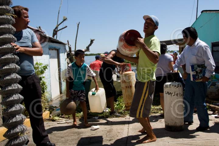 BUENAVISTA, VERACRUZ, 07SEPTIEMBRE2010.- Damnificados por la inundaciones que no salieron de sus hogares de Tlacotalpan, acuden a otros municipios para comprar de agua purificada o gas. FOTO: GUILLERMO PEREA/CUARTOSCURO.COM