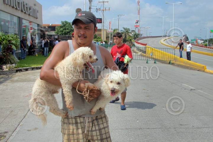 VERACRUZ, VERACRUZ., 20SEPTIEMBRE2010.- Elementos presidenciales y del estado mayor impidieron las operaciones de traslado y rescate vía aérea, terrestre y pluvial el día de hoy para cuidar la seguridad del Presidente Felipe Calderón que recorrió la zona afectada, sin embargo, aun continúan personas atrapadas bajo el agua, algunos habitantes inconformes reclamaron al mandatario federal el paro de labores de rescate debido a su visita, ya que se les negó el acceso a lanchas y camiones de rescate así como el sobrevuelo de aeronaves de salvamento. FOTO: FÉLIX MÁRQUEZ/CUARTOSCURO.COM