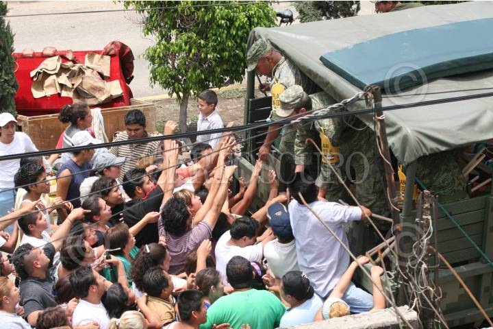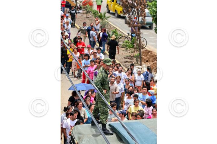 ECATEPEC, ESTADO DE MÉXICO, 03JULIO2011.- Elementos del Ejército Mexicano repartieron despensas entre los afectados por el desbordamiento del Río de los Remedios en la calle Valle de Almazazora, en la colonia Valle de Aragón. FOTO: LM ACEVEDO/CUARTOSCURO.COM