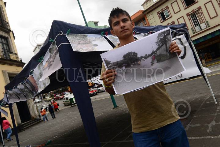 XALAPA, VERACRUZ, 23JUNIO2013.- Habitantes del municipio de Úrsulo Galván se trasladaron a la capital del estado para instalar un centro de acopio debido a las afectaciones que dejó la tormenta tropical Barry a su paso por Veracruz; explicaron que por falta de apoyo por parte del Gobierno del estado, se ven en la necesidad de trasladarse a solicitar ayuda de la ciudadanía xalapeña, lo cual afecta aún más a su economía ya que no cuentan con el dinero suficiente para poder realizar esta acción en los próximos días. También recaudaron víveres para los municipios de Naranjos y Cempoala con ayuda de organizaciones civiles y activistas locales. FOTO: RUBEN ESPINOSA / CUARTOSCURO.COM