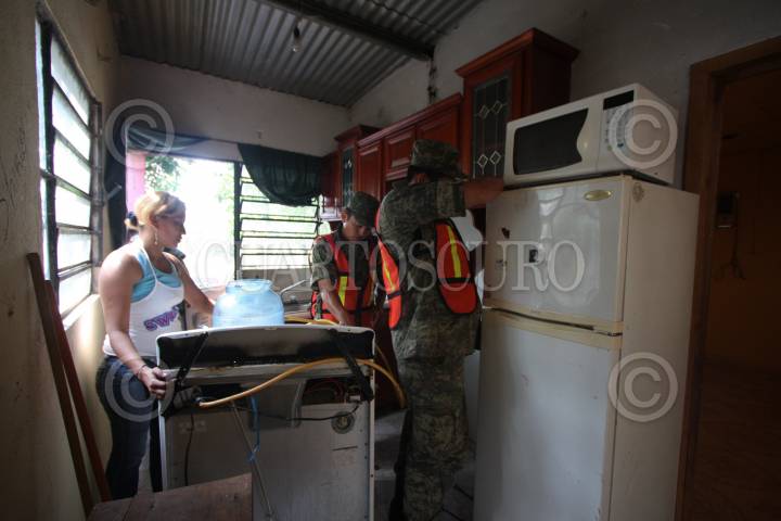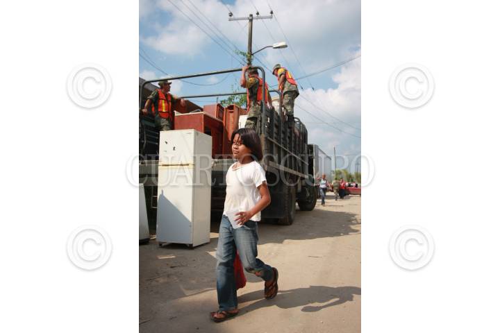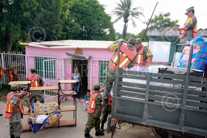 VILLAHERMOSA, TABASCO, 12SEPTIEMBRE2010.- Setenta y tres familias en la ranchería Medellín y Pigua son ayudados por elementos castrense de la 30 Zona Militar a evacuar ante el peligro de inundación por el desborde del río Grijalva. Hoy se cumplen tres semanas que los caudales de los ríos no dan tregua a las inundaciones en esta parte del sureste mexicano. FOTO: MARCO POLO GUZMÁN HERNÁNDEZ/CUARTOSCURO.COM