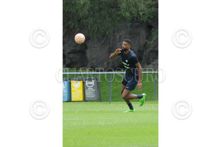 Digo, delantero universitario, recepciona un balón durante el entrenamiento.