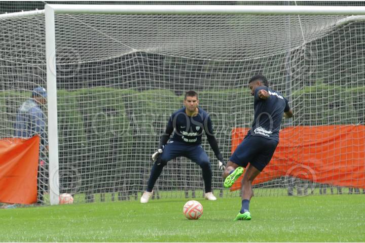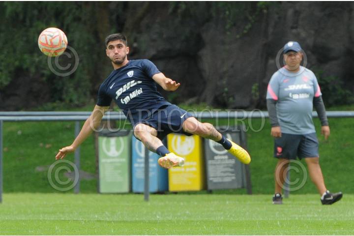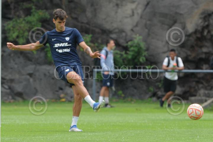 El delantero universitario, Juan Dinneno, durante la práctica de este martes.