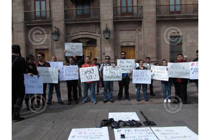 SAN LUIS POTOSÍ, SAN LUIS POTOSÍ, 06OCTUBRE2017.- Periodistas se manifiestan en Palacios de Gobierno por el caso del asesinato del compañero fotoreportero Edgar Daniel Esqueda Castro. FOTO: MARCELO PALACIOS /CUARTOASCURO.COM