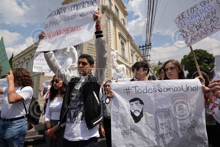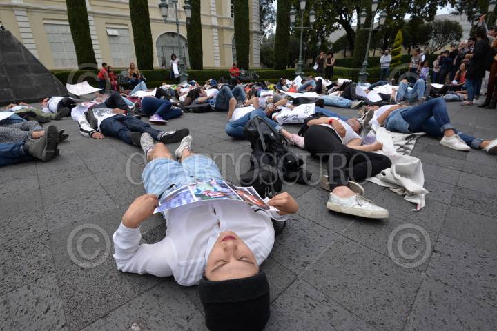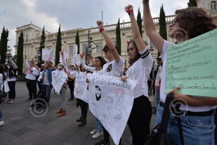 TOLUCA, ESTADO DE MÉXICO, 27ABRIL2018.- Con una marcha silenciosa estudiantes de la UAEM se manifestaron en la cuidad de Toluca por el asesinato de Javier, Daniel y Marco estudiantes de cine en Jalisco; exigieron un alto a la inseguridad. La marcha partió del parque Vicente Guerrero y concluyó en el edifico de rectoría. FOTO: ARTEMIO GUERRA BAZ/ CUARTOSCURO.COM