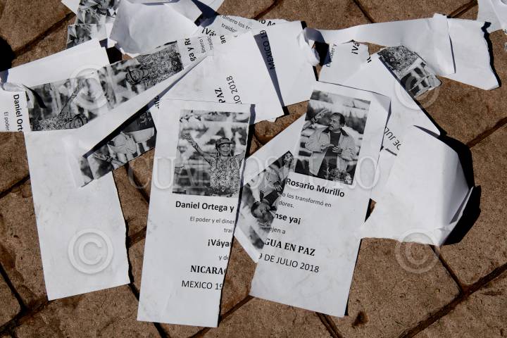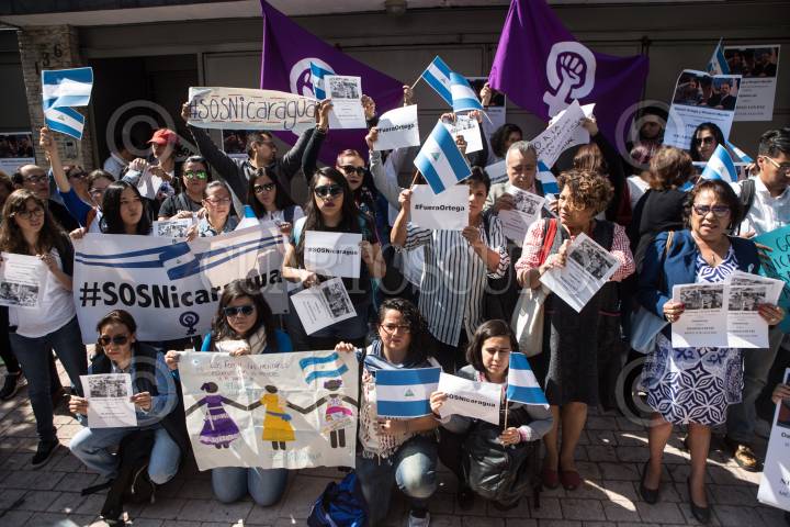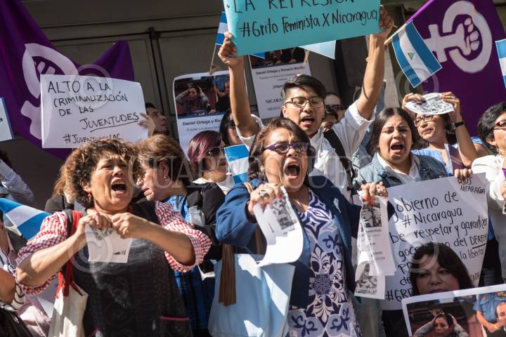 CIUDAD DE MÉXICO, 19JULIO2018.- Colectivos feministas y miembros de la sociedad civil se manifestaron en la embajada de Nicaragua en México para solidarizarse con el pueblo nicaraguense y protestar en contra del gobierno de Daniel Ortega. FOTO: TERCERO DÍAZ /CUARTOSCURO.COM