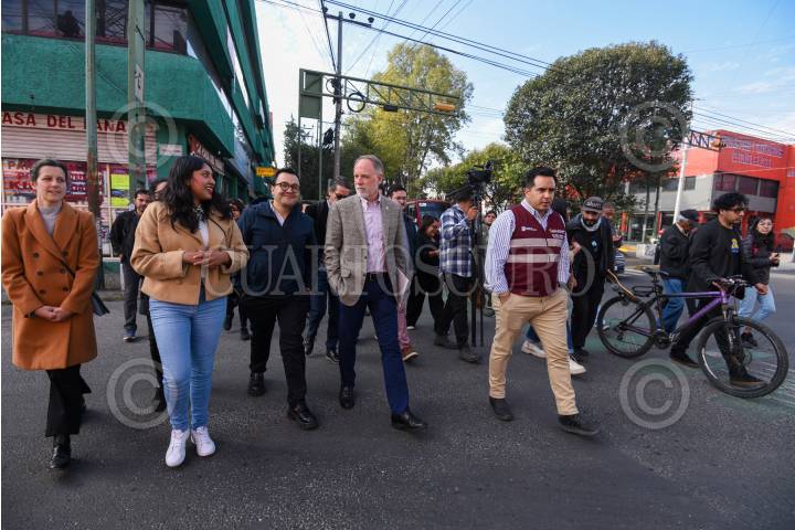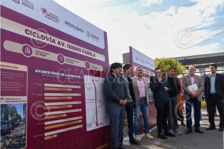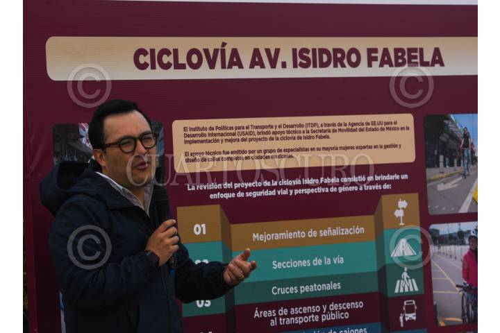 TOLUCA, ESTADO DE MÉXICO, 05DICIEMBRE2024.- Daniel Sibaja Secretario de Movilidad del Estado de México en compañía de integrantes de la Agencia de Estados Unidos para el Desarrollo Internacional (USAID) y el Instituto de Políticas para el Transporte y el Desarrollo (ITDP) realizó un recorrido por la ciclovía de la avenida Isidro Fabela en Toluca, la obra lleva un avance físico del 67 por ciento, con los señalamientos de la ciclovía, pintura en cajones y carriles, delimitadores y dispositivos de control y construcción de guarniciones y banquetas, con una inversión de 15 millones de pesos y que beneficia a casi 1500 ciclistas diariamente. FOTO: CRISANTA ESPINOSA AGUILAR /CUARTOSCURO.COM