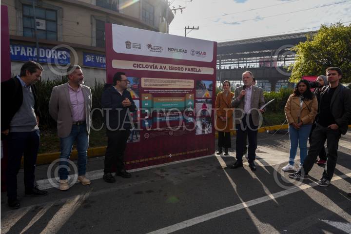 TOLUCA, ESTADO DE MÉXICO, 23JUNIO2025.- Daniel Sibaja, Secretario de Movilidad estatal, Gabriel Medina Peralta, director de Planeación y Gestión Urbana de Toluca, acompañados por activistas y representantes de comercios locales, pusieron en marcha la segunda etapa de la ciclovía de Isidro Fabela en la ciudad de Toluca, con una inversión de 9 millones de pesos y la cual beneficiará a más de 226 mil personas. FOTO: CRISANTA ESPINOSA AGUILAR /CUARTOSCURO.COM