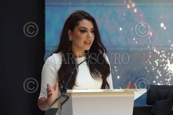 CIUDAD DE MÉXICO, 04SEPTIEMBRE2024. Daniela Cordero Arenas durante la conferencia de prensa de la 73° edición del certamen Miss Universe, que se celebrará en la Ciudad de México. Durante el evento se dieron a conocer las actividades e invitados que tendrá el evento. FOTO: EDGAR NEGRETE LIRA/CUARTOSCURO.COM