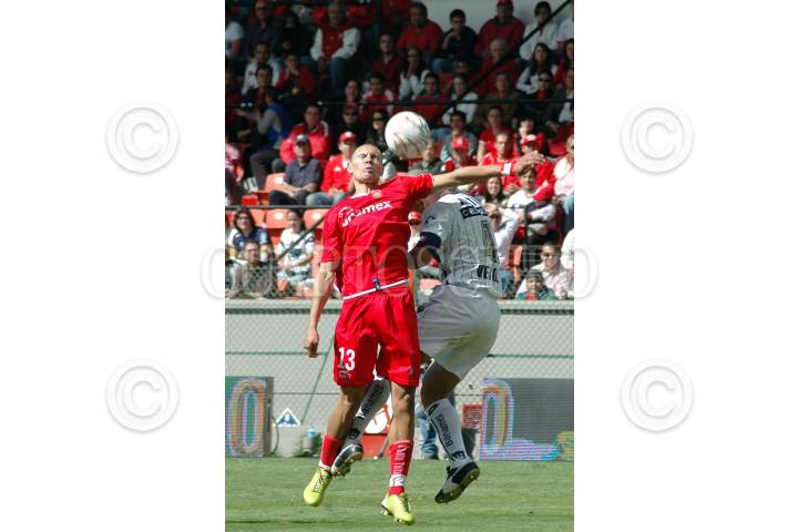 TOLUCA, EDOMEX 25NOVIEMBRE2007.- Los diablos rojos del Toluca se enfretaron este medio día a los Pumas de la UNAM, quedando el marcador 1 - 1. Christian Eduardo Guiménez salta para ganarle el balón a Darío Verón. FOTO: RODOLFO ANGULO/CUARTOSCURO.COM