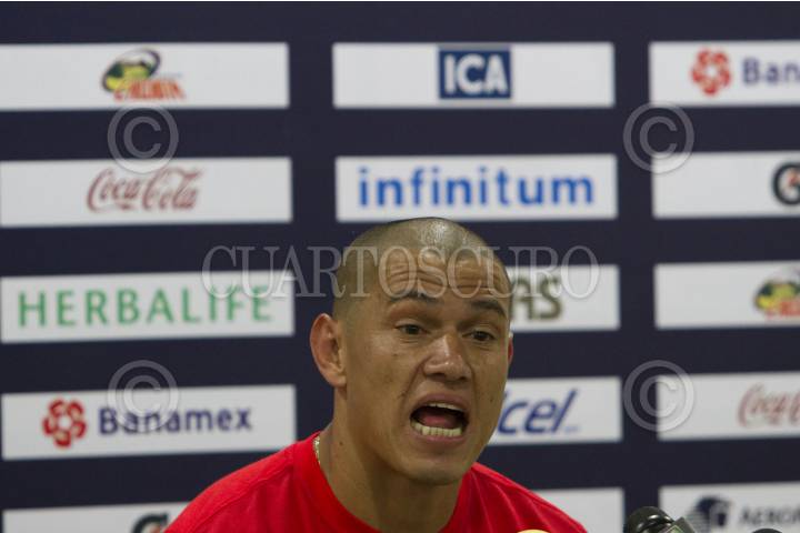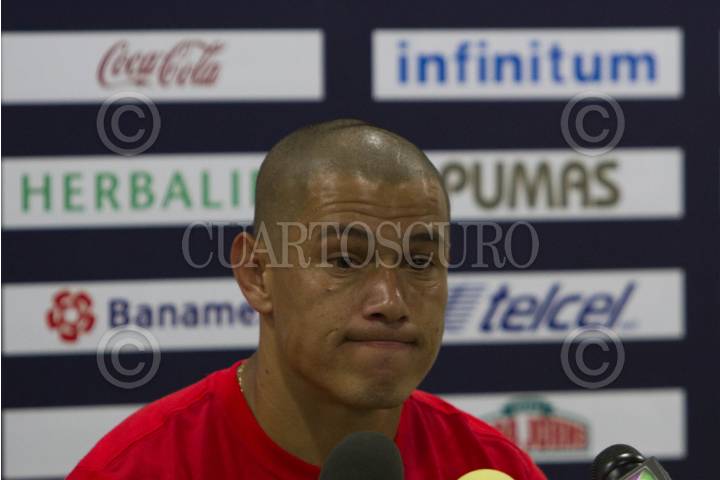 MÉXICO D.F., 12AGOSTO2014.- Darío Verón, jugador de los Pumas de la UNAM, ofreció una conferencia a representante de los medio de comunicación, donde fue cuestionado sobre la situación que prevalece en el equipo tras tres derrotas consecutivas. FOTO: GUILLERMO PEREA /CUARTOSCURO.COM