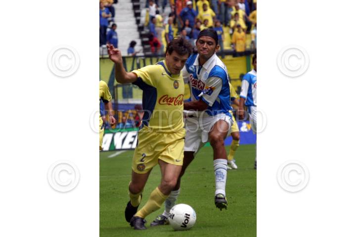 MEXICO, D.F. 12 SEPTIEMBRE 2004.- Horacio Ameli, de las Águilas del América esquiva a uno de los jugadores del equipo de Puebla en su encuentro en el Estadio Azteca. FOTO:Sandra Perdomo/CUARTOSCURO.COM