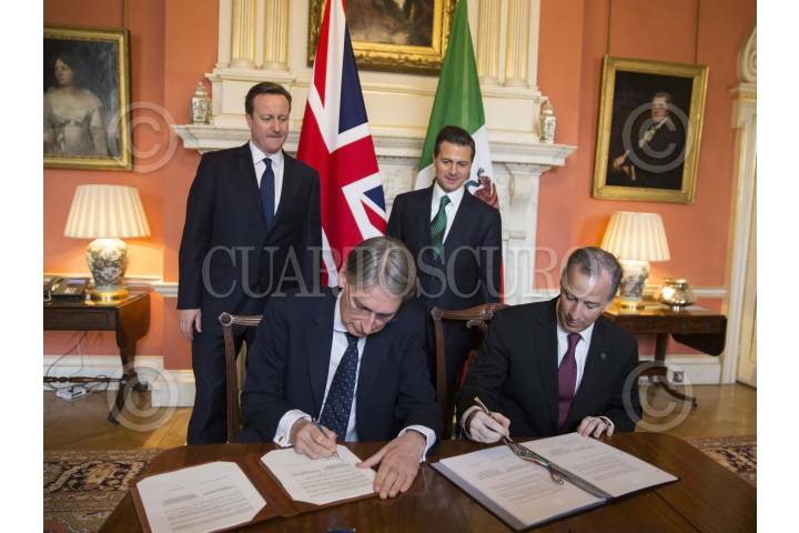 LONDRES, REINO UNIDOS, 04MARZO2015.- En el marco de la Visita de Estado que realiza al Reino Unido, el Presidente Enrique Peña Nieto fue recibido en el 10 de Downing Street por el Primer Ministro, David Cameron, en donde sostuvieron una reunión privada y atestiguaron la Firma de la Declaración Conjunta entre el Secretario de Relaciones Exteriores, José Antonio Meade Kuribreña, y el Secretario de Estado para Asuntos Exteriores de la nación anfitriona, Philip Hammond. FOTO: PRESIDENCIA /CUARTOSCURO.COM