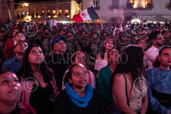 ZACATECAS, ZACATECAS, 15SEPTIEMBRE2023.- Como parte de los festejos por el Día de la Independencia, cientos de personas se dieron cita en la Plaza de Armas para disfrutar de la música, el tradicional “grito de Dolores” por parte del gobernador del Estado, David Monreal Ávila; y los fuegos artificiales que iluminaron el cielo zacatecano. FOTO: ADOLFO VLADIMIR /CUARTOSCURO.COM