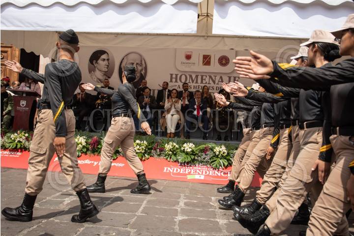 ZACATECAS, ZACATECAS, 16SEPTIEMBRE2023.- Está mañana David Monreal Avila, gobernador del Estado, presidió el tradicional desfile militar y cívico, como parte de los festejos del Día de la Independencia que se realizan en la capital zacatecana. El recorrido se realizó sobre la avenida Hidalgo, desde Plaza de Armas hasta El Caballito González Ortega. FOTO: ADOLFO VLADIMIR /CUARTOSCURO.COM