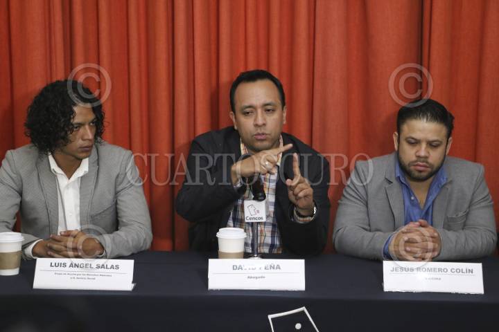 Los abogados David Peña, Karla Michelle Salas, Jesús Ochoa (hermano de Digna Ochoa) y Alan Piñón del Grupo de Acción de DH durante la conferencia de prensa donde se día conocer la sentencia de la Corte Interamericana del Derechos Humanos, donde condena al Estado Mexicano por el Caso de Digna Ochoa, en la Comisión de Derechos Humanos de la Ciudad de México.