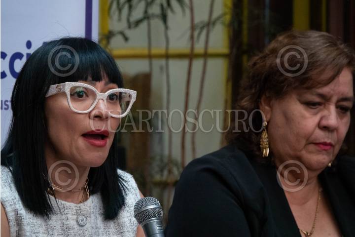 CIUDAD DE MÉXICO, 14FEBRERO2024.- La abogada Karla Michelles Salas, representantee de Grupo de Acción por los Derechos Humanos y la Justicia Social, así como Norma Andrade, madre de Lilia Alejandra (víctima de feminicidio en 2001 en Ciudad Juárez, Chihuahua), ofrecieron conferencia de prensa para anunciar que el caso ha sido atraído por la Corte Interamericana de Derechos Humanos (CIDH) tras la inacción y soluciones del gobierno mexicano. El jurista expuso que la fiscalía tiene en detención a un sospechoso desde hace seis años pero no ha podido contrastar el ADN de la víctima con el suyo por lo que presupone tan sólo una simulación. Por otro lado, establecieron que lo que se buscará incorporar los delitos de violencia sexual como un acto de tortura ante la Corte IDH, mientras que recalcaron la impunidad por parte de las autoridades en el caso como a los dos ataques de los que Norma Andrade ha sido víctima. FOTO: GALO CAÑAS/CUARTOSCURO.COM