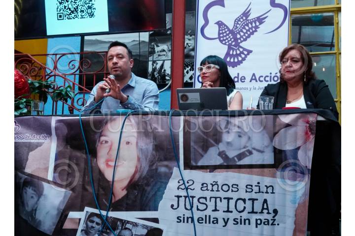 CIUDAD DE MÉXICO, 14FEBRERO2024.- La abogada Karla Michelles Salas y el abogado David Peña, ambos representantes de Grupo de Acción por los Derechos Humanos y la Justicia Social, así como Norma Andrade, madre de Lilia Alejandra (víctima de feminicidio en 2001 en Ciudad Juárez, Chihuahua), ofrecieron conferencia de prensa para anunciar que el caso ha sido atraído por la Corte Interamericana de Derechos Humanos (CIDH) tras la inacción y soluciones del gobierno mexicano. El jurista expuso que la fiscalía tiene en detención a un sospechoso desde hace seis años pero no ha podido contrastar el ADN de la víctima con el suyo por lo que presupone tan sólo una simulación. Por otro lado, establecieron que lo que se buscará incorporar los delitos de violencia sexual como un acto de tortura ante la Corte IDH, mientras que recalcaron la impunidad por parte de las autoridades en el caso como a los dos ataques de los que Norma Andrade ha sido víctima. FOTO: GALO CAÑAS/CUARTOSCURO.COM