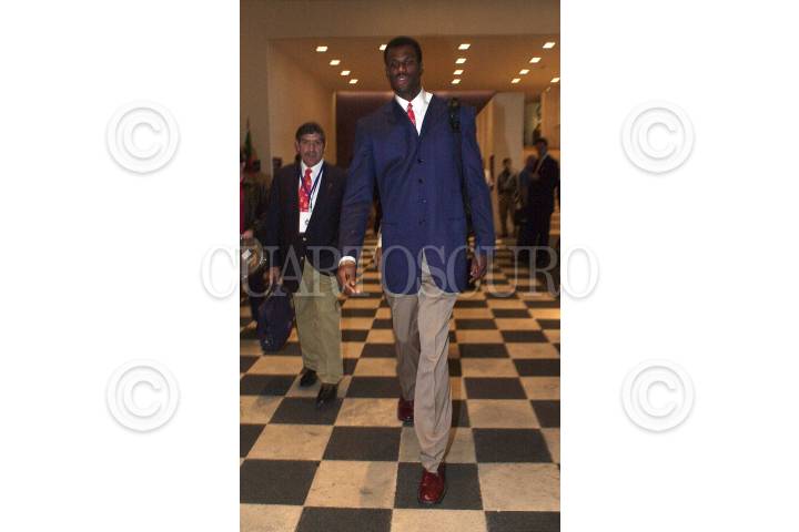 David Robinson, poste de los Spurs de San Antonio, de la liga profesional de basquetbol de los Estados Unidos (NBA), asistio a la Asamblea de la Odepa como parte de la delegación del estado de Texas para promover su ciudad como sede de los Juegos Panamericanos la cual ganó Río de Janeiro. FOTO: Oswaldo Ramírez/CUARTOSCURO.COM