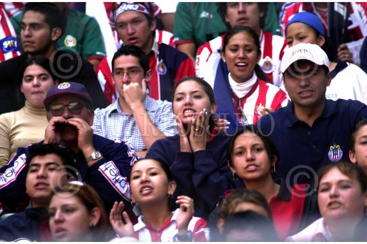Aficionados de Guadalajara durante una edición más del clásico del futbol mexicano, esta tarde en el estadio Azteca. El marcador finalizó 1-1, a pesar de que el equipo local jugó 23 minutos frente al rival que solo contaba con 10 hombres. FOTO: Juan Pablo Zamora/CUARTOSCURO.COM