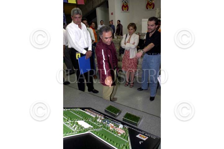 El presidente del equipo Monarcas Morelia, le muestra Rosario Robles, presidenta nacional del PRD y Alberto de la Torre, presidente de la Federación de Fútbol Mexicano, parte del proyecto de las nuevas instalaciones del Club. FOTO: Juan Pablo Zamora/CUARTOSCURO.COM