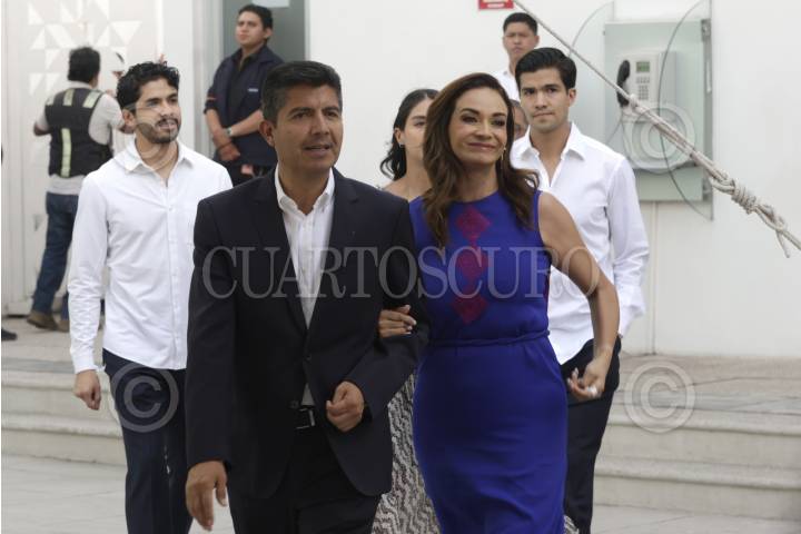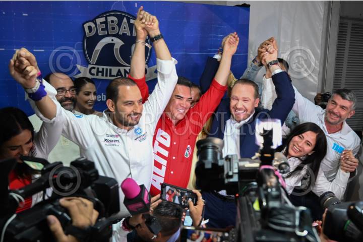 PUEBLA, PUEBLA, 12MAYO2024.- Los candidatos a la gubernatura Eduardo Rivera, por la coalición Mejor Rumbo para Puebla, Alejandro Armenta, por la coalición Sigamos Haciendo Historia, y Fernando Morales, de Movimiento Ciudadano, acudieron al Complejo Cultural Universitario de la BUAP, para participar en el Debate Puebla 2024. FOTO: MIREYA NOVO/ CUARTOSCURO.COM