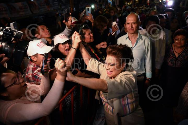 CIUDAD DE MÉXICO, 12MAYO2024.- Clara Brugada, candidata de Morena a la jefatura de gobierno, salió del debate y saludo a sus simpatizantes que la esperaban afuera de las instalaciones donde se llevó a cabo. FOTO: DANIEL AUGUSTO/ CUARTOSCURO.COM