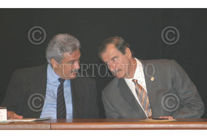 MEXICO, D.F. 11MARZO2005.- El presidente Vicente Fox y Mario Marín, gobernador de PueBla, al termino de la ceremonia de Compromiso Nacional por la Decada de la Educación para el Desarrollo Sustentable. FOTO: Nelly Salas/CUARTOSCURO.COM