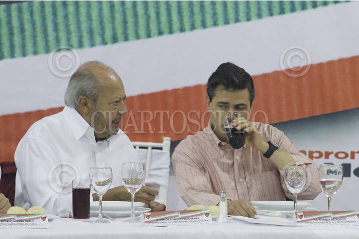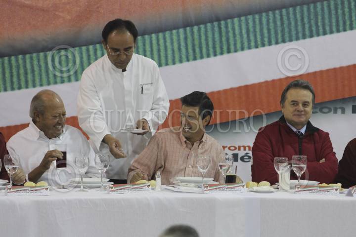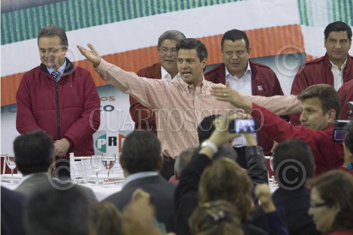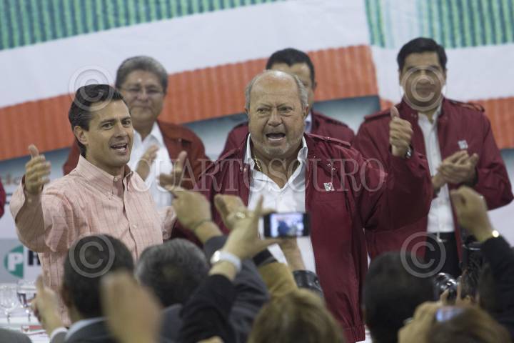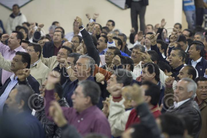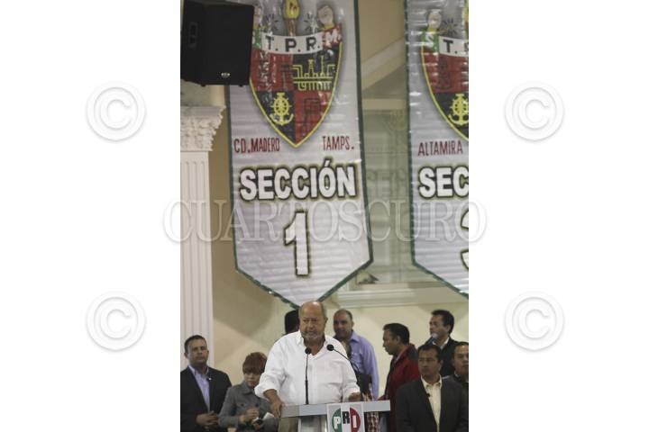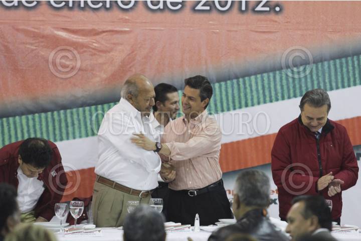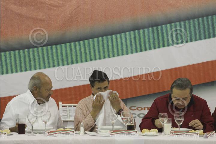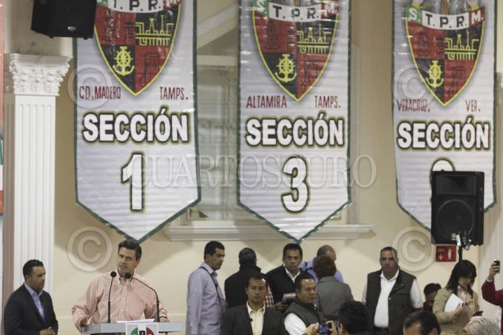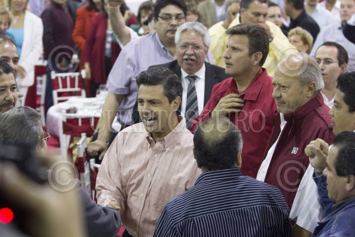 MÉXICO, D.F., 12ENERO2012.- Enrique Peña Nieto, precandidato del PRI a la presidencia de la república, se reunió con trabajadores de las 52 secciones del sindicato petrolero, acompañado por el líder del gremio Carlos Romero Deschamps, y el presidente del CEN del PRI, Pedro Joquin Coldwell. FOTO: SAÚL LÓPEZ/CUARTOSCURO.COM