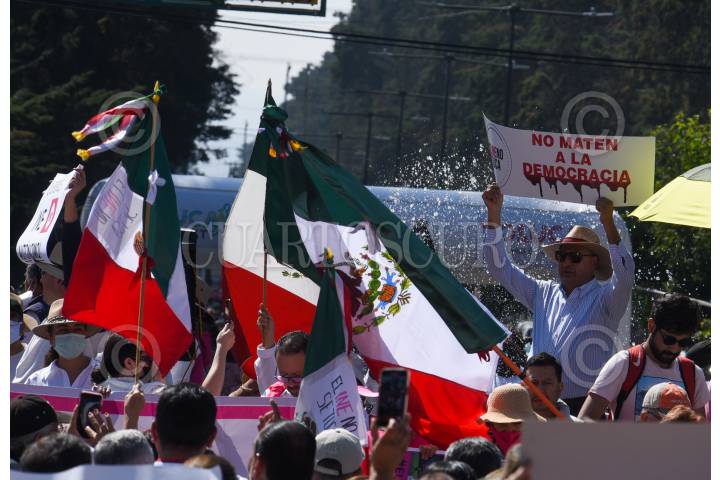 Cientos de ciudadanos salieron este domingo en Toluca y se unieron al movimiento nacional #ELINENOSETOCA, partieron del monumento al Águila y llegaron a la Plaza de los Mártires.