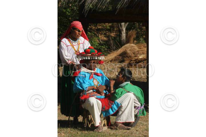 BAJIO DEL TULE, JALISCO 18MARZO2006._ Una familia de indigenas Huicholes durante reunion del Sub Comandante Insurgente Marcos, Delegado Zero del EZLN con indigenas adherentes a la sexta Delcaracion de La Selva Lacandona en el poblado Bajio del Tule en el estado de Jalisco. FOTO: Moysés Zúñiga Santiago/CUARTOSCURO.COM