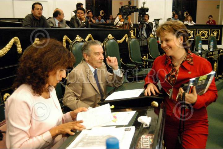 MEXICO, D.F. 01ABRIL2005.- Durante la sesión ordinaria de la Asamblea Legislativa, el diputado priísta Jaime Aguilar Alvarez y la legisladora independiente Martha Teresa Delgado. FOTO:CUARTOSCURO.COM